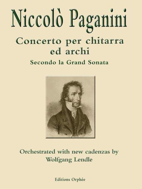 World-class guitarist Wolfgang Lendle looked upon the famous Paganini Grand Sonata for guitar and violin and envisioned a wholly-new guitar concerto. Read his thoughts and analysis in orchestrating a full string accompaniment to the original solo guitar part; then rejoice in the addition of a Paganini concerto to the comparable standard repertoire! Handsomely published by Editions Orphée; the new Concerto is packaged as a set of full score and one each of the string parts; with a separately available solo guitar part with rehearsal CD. Lendle's changes to the guitar solo part are few; detailed neatly in his introduction; and the string parts are simple enough for a student string orchestra or string quartet. This piece includes several cadenzas; offered in the spirit of the composer and the work.