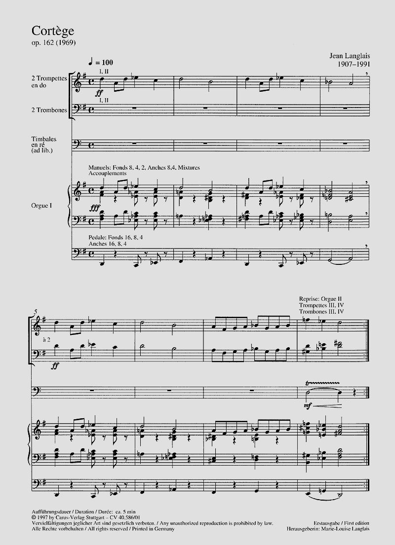 - Besetzung 4 Trompeten, 4 Posaunen, 2 Orgeln und Pauke