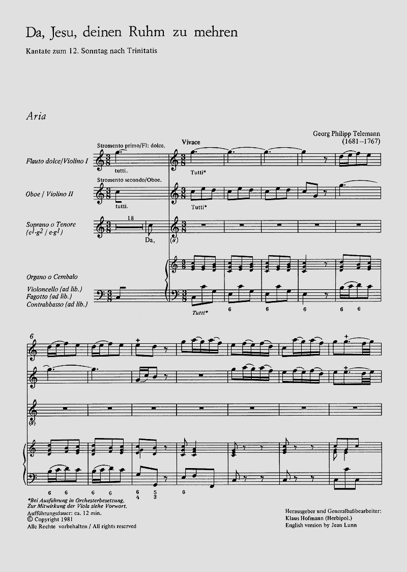 - Besetzung Gesang (hoch), Blockflöte, Oboe und Basso Continuo