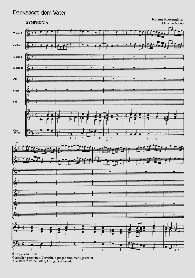 - Besetzung Gemischter Chor (SSATB), 2 Violinen und Basso Continuo