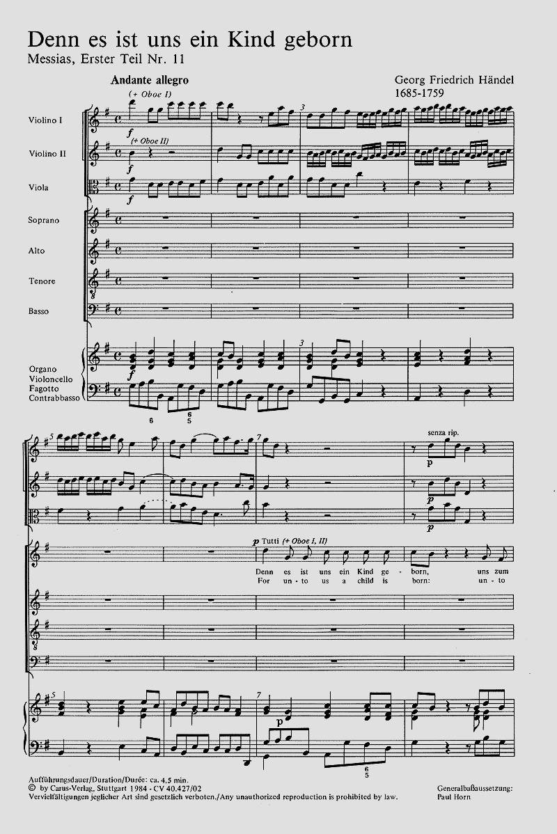 Denn es ist uns ein Kind geboren