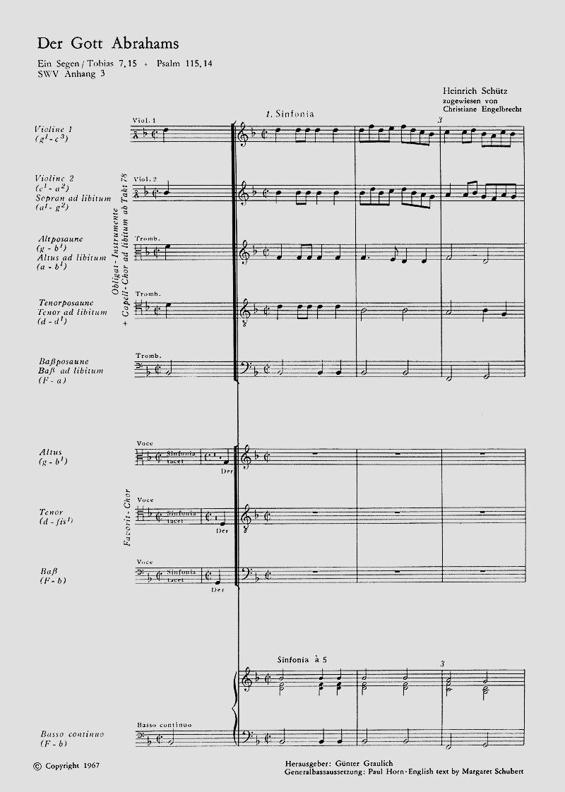 Ein Segen - Autorschaft unsicher, durch Christiane Engelbrecht Schütz zugewiesen - Fav ATB, 3 Trb, 2 Vl, Cb, Org, [Cap SATB] - Tonart g-dorisch