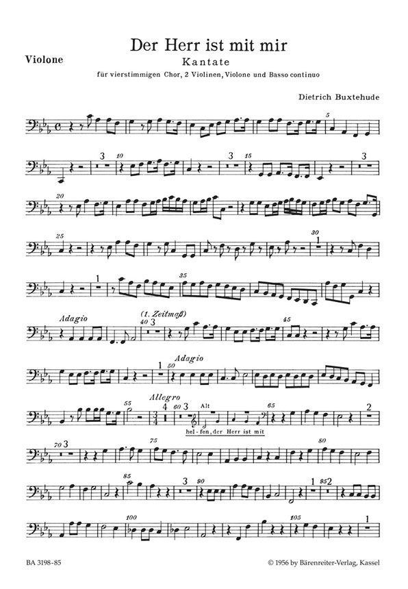 Kantate BuxWV 15 für vierstimmigen Chor, zwei Violinen, Violone (Violoncello) und Basso continuo (Psalm 118, 6-7)