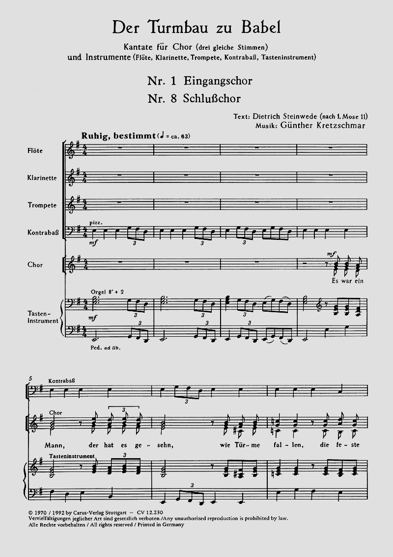 - Besetzung Kinderchor, Querflöte, Klarinette, Trompete, Kontrabass und Klavier