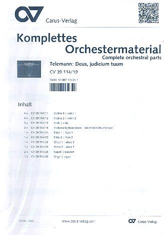 Die repräsentative lateinische Psalmkomposition 'Deus, judicium tuum' (Ps. 71/72) zählt zum Besten aus Telemanns Feder. Die Entstehung ist mit seiner im Herbst 1737 angetretenen achtmonatigen Paris-Reise verbunden, bei der er im Musikleben der Metropole Triumphe feierte. Wie er nicht ohne Stolz berichtet, wurde das Stück 'im Concert spirituel von bey nahe hundert auserlesenen Personen, in dreien Tagen zweimahl, aufgeführet'. Drei prächtige Chorsätze umschliessen eine farbenreiche Folge von anspruchsvollen Solosätzen.