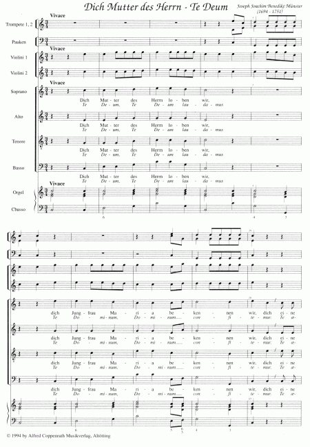 Soli SATB, Coro SATB, 2 Tr, Timp, 2 Vl, Bc