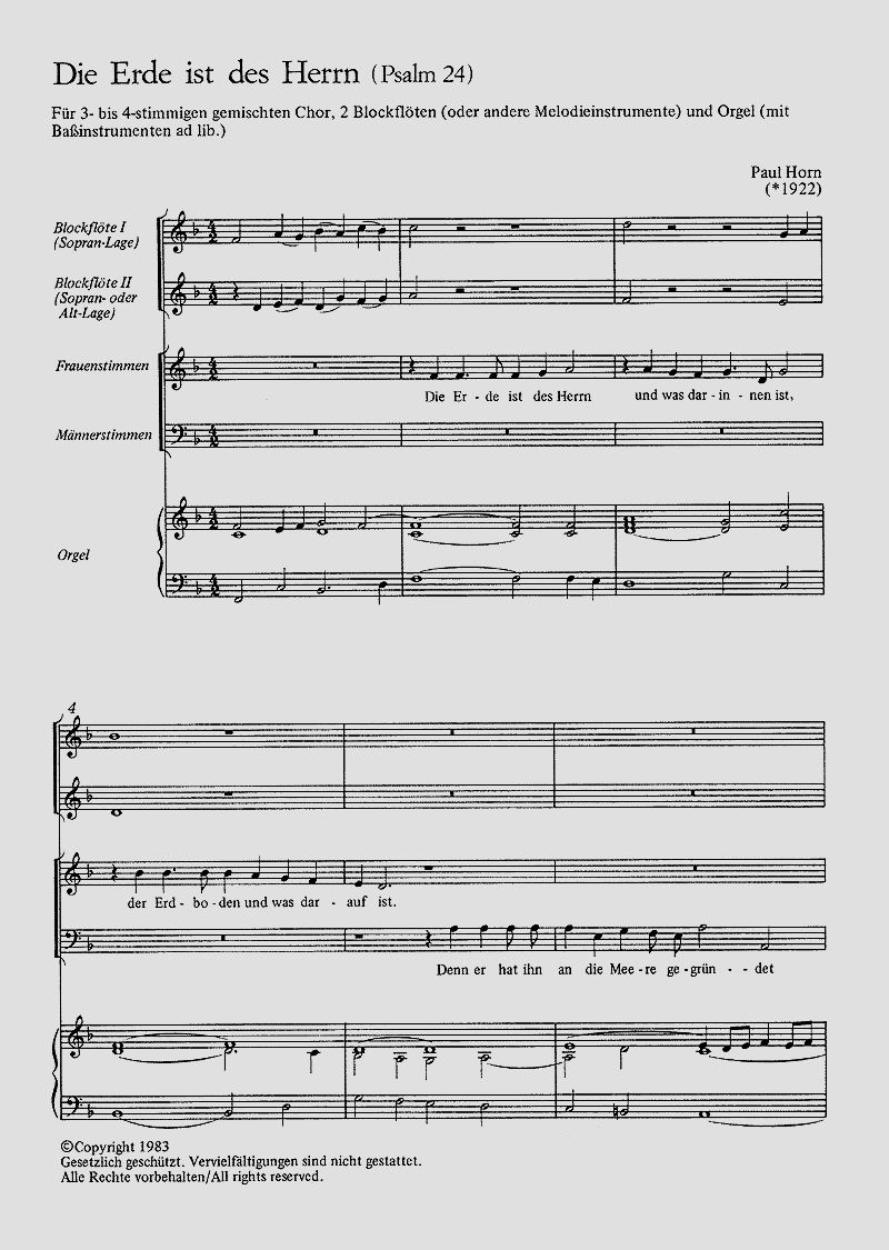 - Besetzung Gemischter Chor (SAM), 2 Blockflöten und Orgel