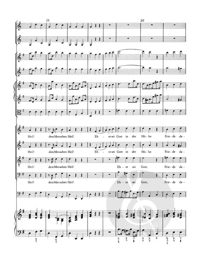 - Besetzung Soli, Gemischter Chor (SATB), 2 Querflöten, 2 Fagotte, 2 Hörner, Streicher und Basso Continuo