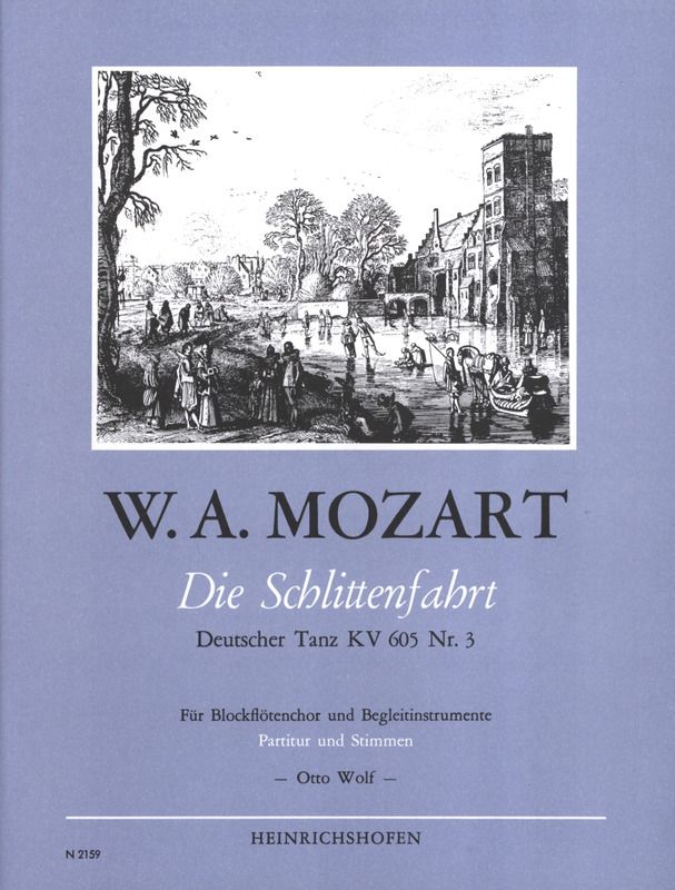 Drei deutsche Tänze für Streicher, Bläser, Pauken und Schellen schrieb Mozart 1791. Aus ihnen wählte Otto Wolf den dritten Tanz aus, dessen originelle Diktion eine Bearbeitung für Blockflötenchor nahelegte, wobei die Posthornstimme durch ein Sopranmetallophon ersetzt werden kann. Damit ist nicht nur jugendlichen Blockflötisten ein Werk zugänglich gemacht, das bei pointierter Wiedergabe Spieler und Hörer gleichermaßen erfreuen dürfte.