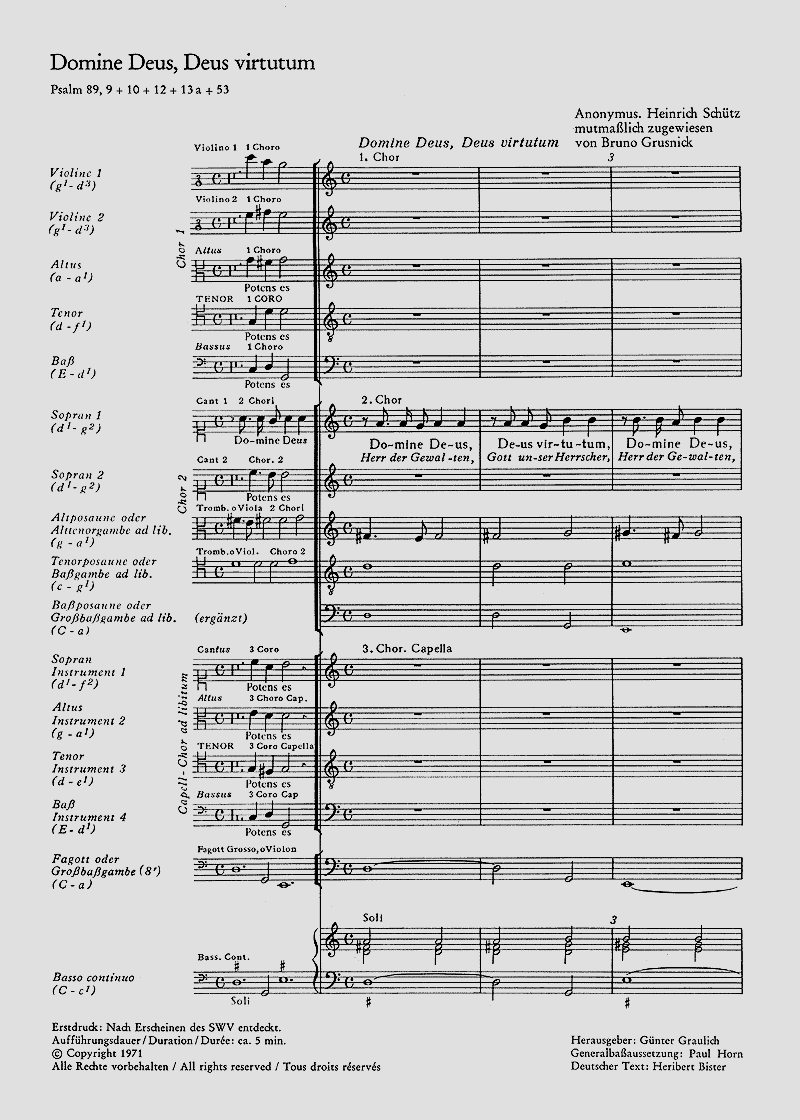 Mehrfaches latenisches Konzert - Komposition von Anon., durch Bruno Grusnick Schütz zugewiesen - Fav SSATB, Fg, 3 Trb (3 Vga), 2 Vl, Cb, Org, [Cap SATB, 4 Instr] - Tonart d-dorisch