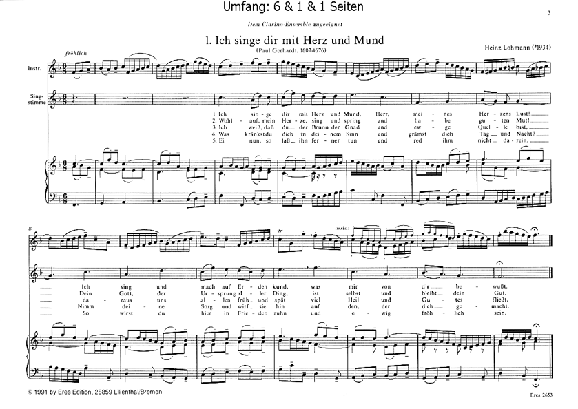 Für Sopran, Soloinstrument (Klarinette Bb / Flöte / Violine) und Orgel oder Klavier