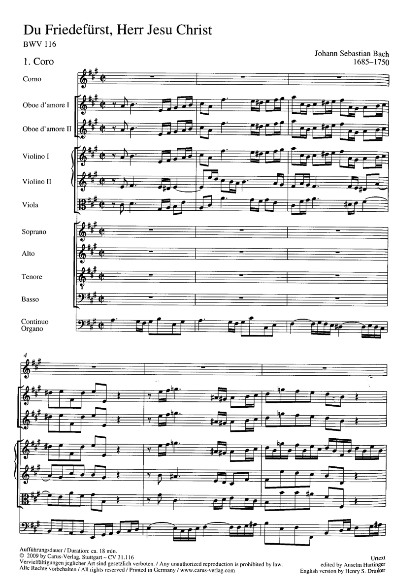 - Besetzung Soli, Gemischter Chor (SATB), 2 Oboen, 2 Violinen, Viola, Horn und Basso Continuo