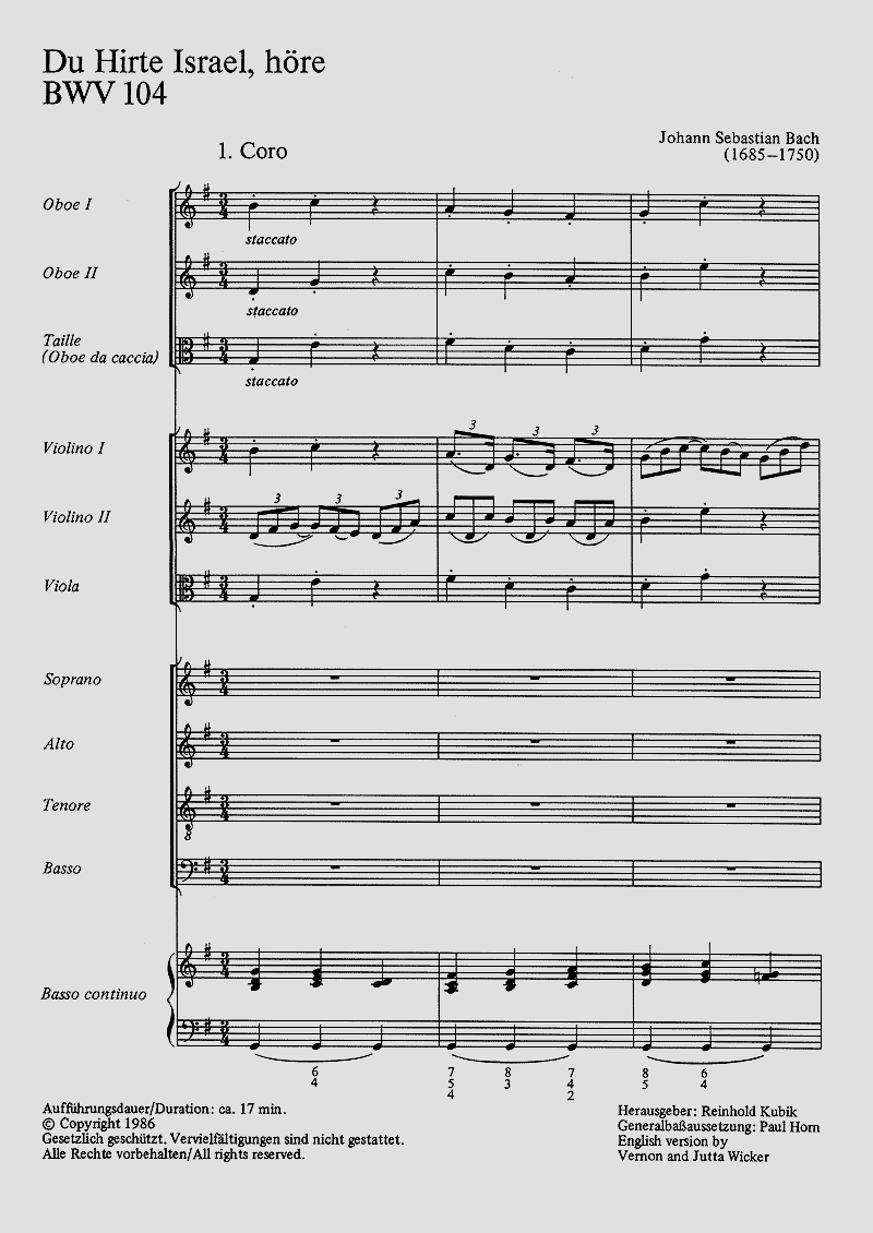 - Besetzung Soli, Gemischter Chor (SATB), 2 Oboen, Instrument, Streicher und Orgel