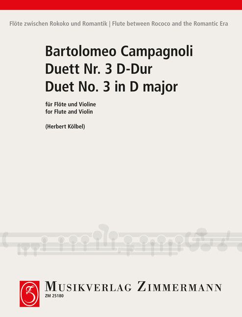Campagnolis 3. Duett aus op. 2 zählt zu den spielfreudigsten. Einer konzertanten Flötenstimme - ohne hohe technische Ansprüche - steht die Violine mit viel akkordischer Figuration, im Ganzen aber begleitender Funktion, gegenüber.