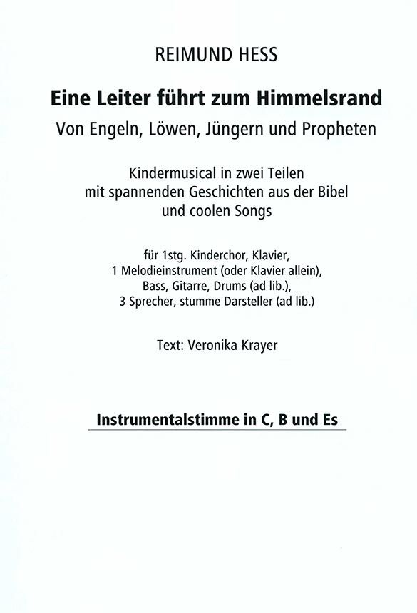 Kindermusical in zwei Teilen mit spannenden Geschichten aus der Bibel und coolen Songs für 1stg. Kinderchor, Klavier, 1 Melodieinstrument (oder Klavier allein), Bass, Gitarre, Drums (ad lib.), 3 Sprecher, stumme Darsteller (ad lib.) Text: Veronika Krayer