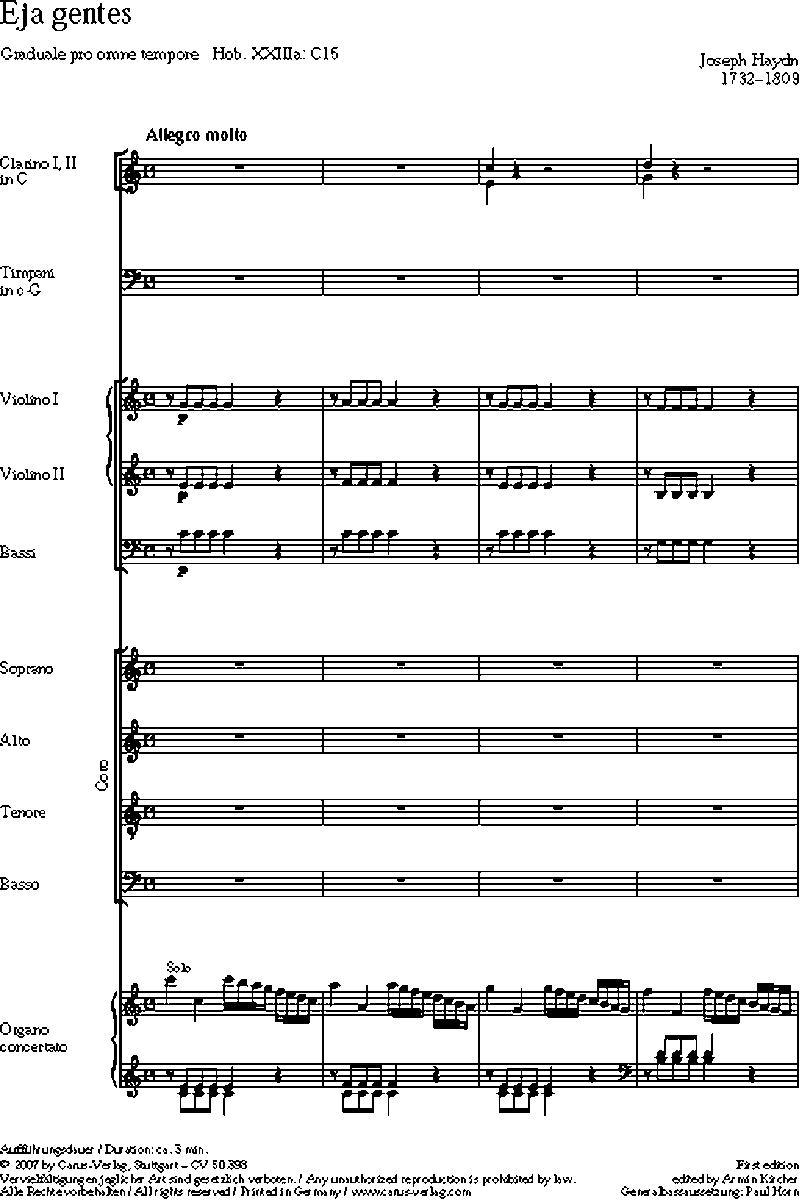 Graduale pro omne tempore - In einer zeitgenössischen Abschrift aus der niederösterreichischen Wallfahrtsbasilika Sonntagberg ist das Graduale pro omne tempore Eja gentes überliefert. Joseph Haydn wird als Autor der festlichen Motette angeführt, die sich bestens zur Kombination mit klassischen Messvertonungen in Gottesdienst und Konzert eignet. Die solistische Verwendung der Orgel gibt dem Werk eine besonders reizvolle Prägung.Graduale pro omne tempore - In einer zeitgenössischen Abschrift aus der niederösterreichischen Wallfahrtsbasilika Sonntagberg ist das Graduale pro omne tempore Eja gentes überliefert. Joseph Haydn wird als Autor der festlichen Motette angeführt, die sich bestens zur Kombination mit klassischen Messvertonungen in Gottesdienst und Konzert eignet. Die solistische Verwendung der Orgel gibt dem Werk eine besonders reizvolle Prägung.