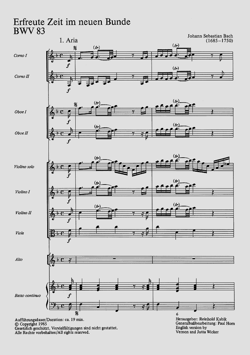 - Besetzung Soli, Gemischter Chor (SATB), 2 Oboen, 2 Hörner, Violine, Streicher und Orgel