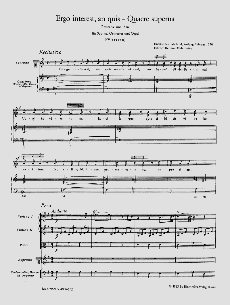Rezitativ und Arie - Quaere superna KV143