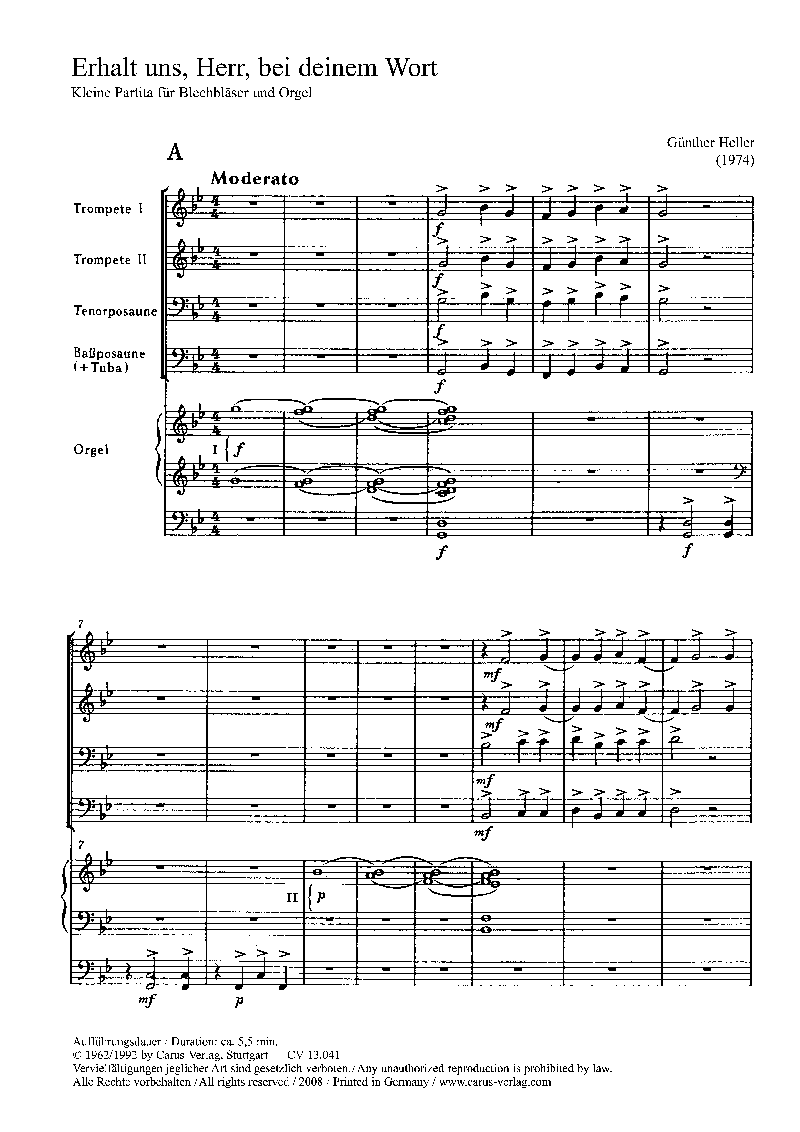 - Besetzung 2 Trompeten, 2 Posaunen und Orgel