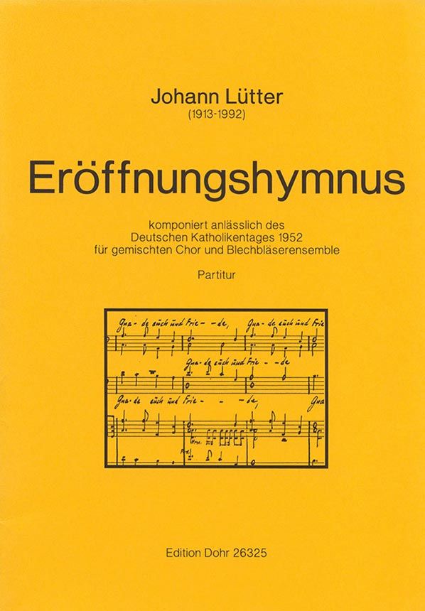 Reihe: Johann Lütter: Gesamtausgabe der vollendeten Werke. Gemischter Chor, Trompete (3), Horn (2), Posaune (3), Tuba; Partitur. Format: 25 S. - 29,7 x 21 cm.