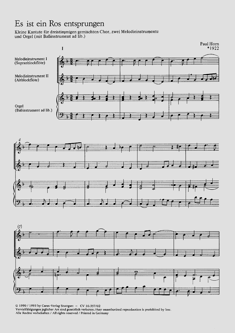 - Besetzung Gemischter Chor (SAM), 2 Blockflöten und Orgel