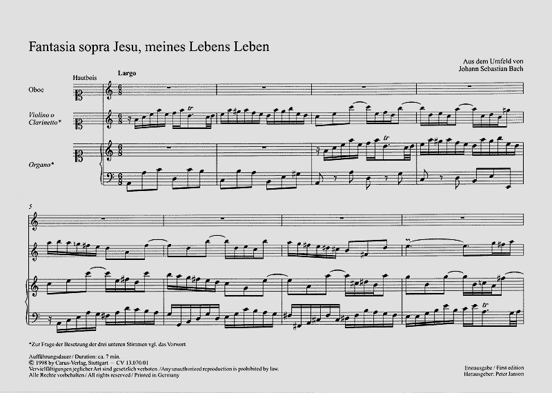Aus dem Umkreis J. S. Bachs - Ob, Vl (Clt), Org - Partitur mit 2 Stimmen