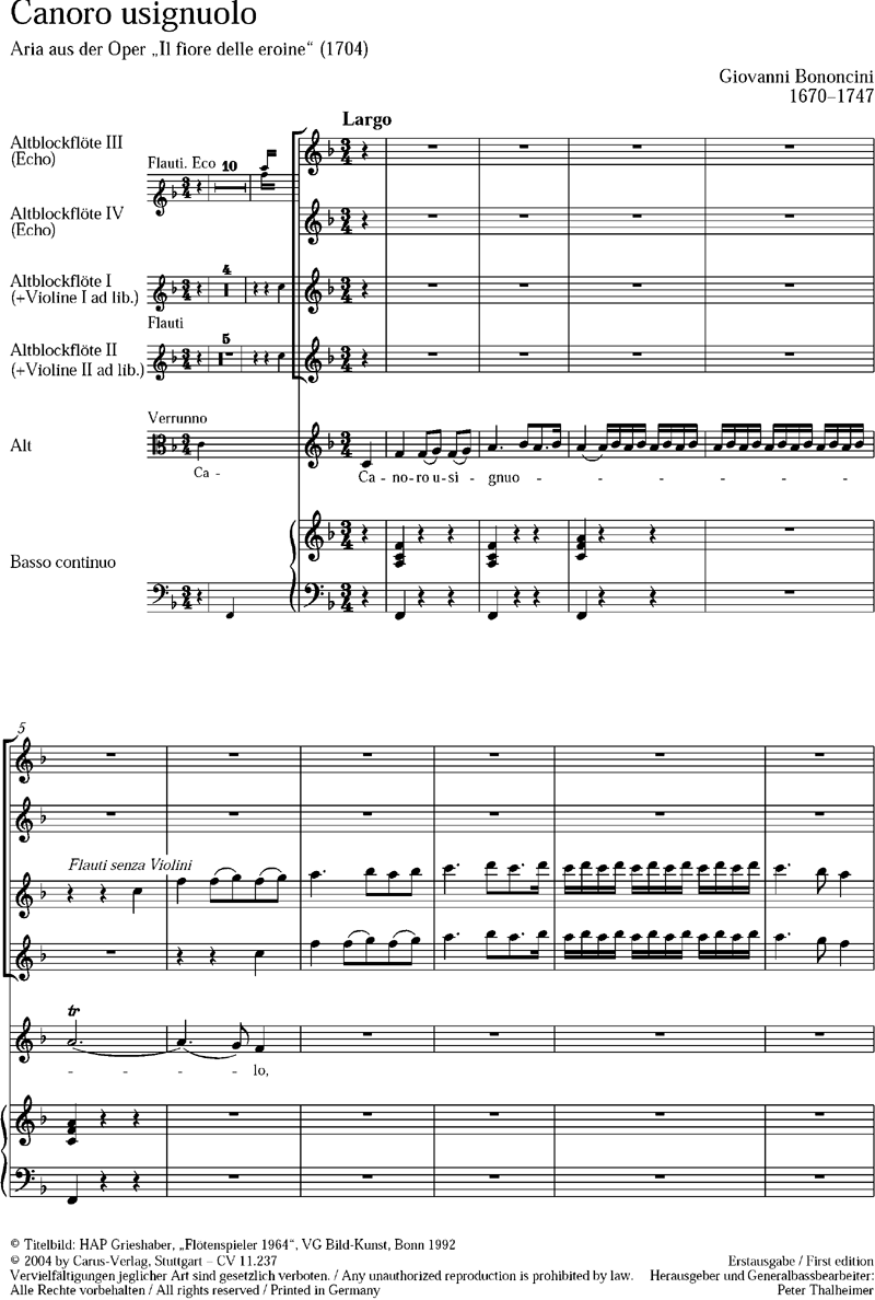 - Besetzung Gesang (tief), 4 Blockflöten und Basso Continuo