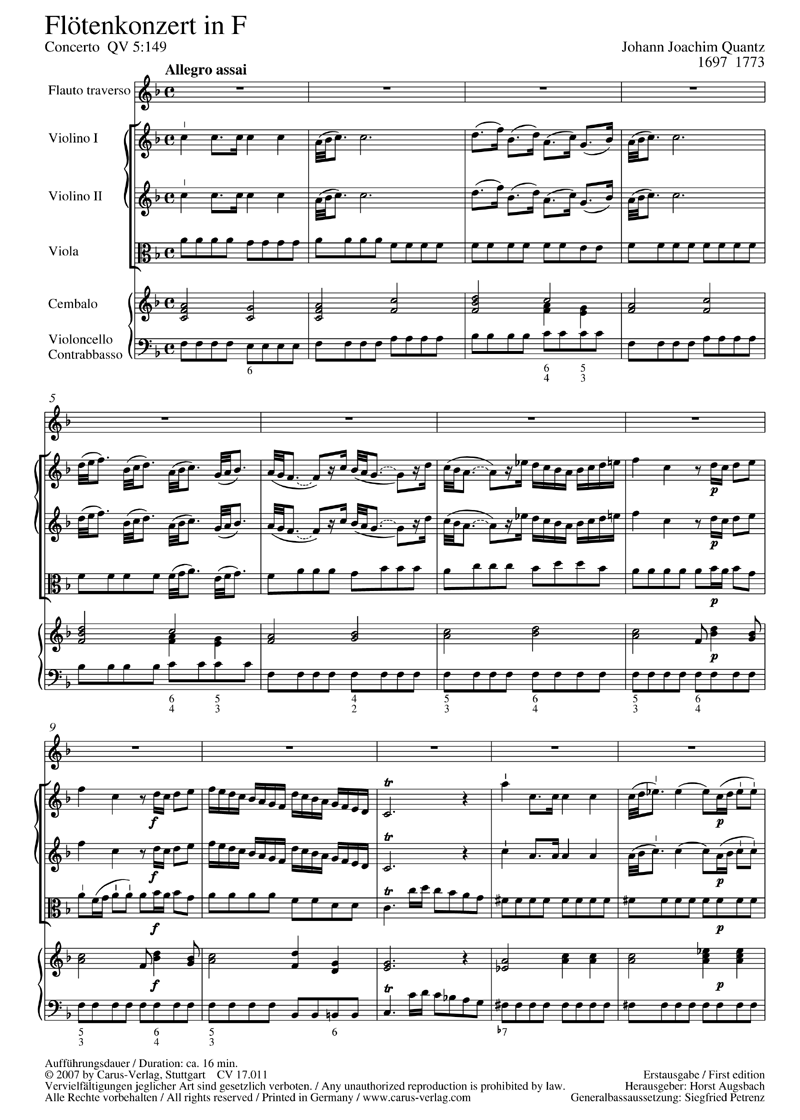 - Besetzung Querflöte, 2 Violinen, Viola, Cello und Cembalo