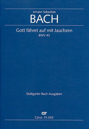 Kantate zum Himmelfahrtsfest - Als Teil seines dritten Leipziger Kantatenjahrgangs führte Bach am 30. Mai 1726 die Himmelfahrtskantate 'Gott fähret auf mit Jauchzen' auf. Ihr Text ist im gleichen Jahrin der in Rudolstadt ohne Angabe eines Textdichters erschienenen Sammlung 'Sonn- und Fest-Tags-Andachten über die ordentlichen Evangelia' enthalten. Diese Texte lagen bereits im Kirchenjahr 1704/05 am Meininger Hof vor, ihr Autor war möglicherweise Herzog Ernst Ludwig von Sachsen-Meiningen. Soli SATB, Coro SATB, 2 Ob, 3 Tr, Timp, 2 Vl, Va, Bc - Tonart C-Dur / G-Dur