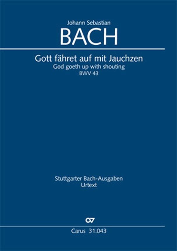 Kantate zum Himmelfahrtsfest - Als Teil seines dritten Leipziger Kantatenjahrgangs führte Bach am 30. Mai 1726 die Himmelfahrtskantate 'Gott fähret auf mit Jauchzen' auf. Ihr Text ist im gleichen Jahrin der in Rudolstadt ohne Angabe eines Textdichters erschienenen Sammlung 'Sonn- und Fest-Tags-Andachten über die ordentlichen Evangelia' enthalten. Diese Texte lagen bereits im Kirchenjahr 1704/05 am Meininger Hof vor, ihr Autor war möglicherweise Herzog Ernst Ludwig von Sachsen-Meiningen. Soli SATB, Coro SATB, 2 Ob, 3 Tr, Timp, 2 Vl, Va, Bc - Tonart C-Dur / G-Dur