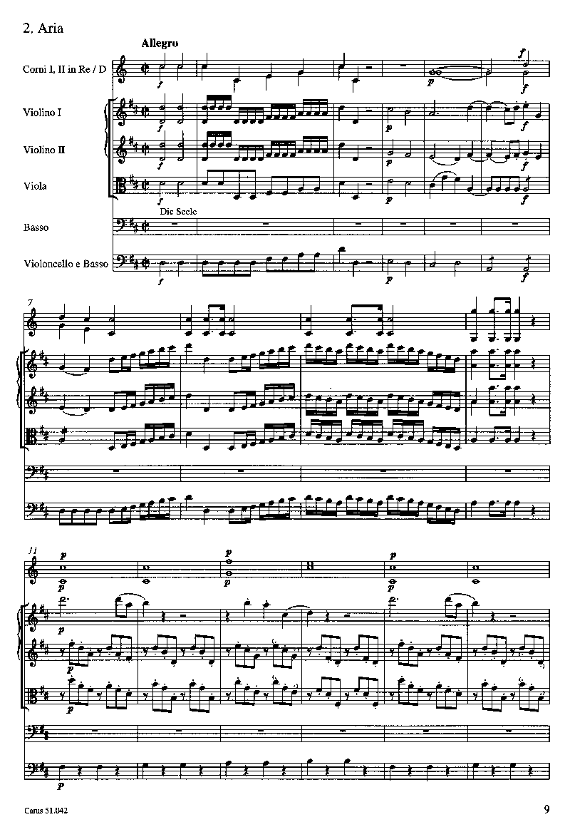 - Besetzung Soli, Gemischter Chor (SATB), 2 Oboen, 2 Hörner, 2 Violinen, 2 Violen und Basso Continuo