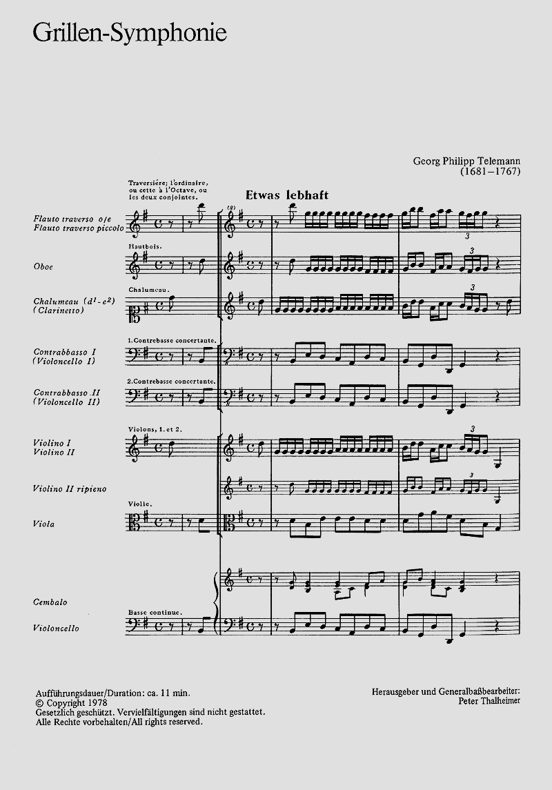 - Besetzung Querflöte, Oboe, Klarinette, 2 Kontrabässe, Streicher und Basso Continuo