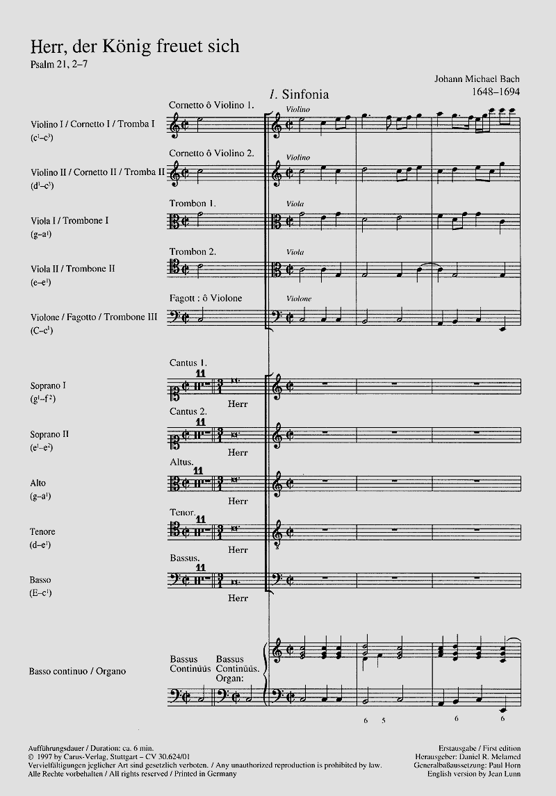 - Besetzung Gemischter Chor (SATB), 2 Violinen, 2 Violen, Violone und Basso Continuo