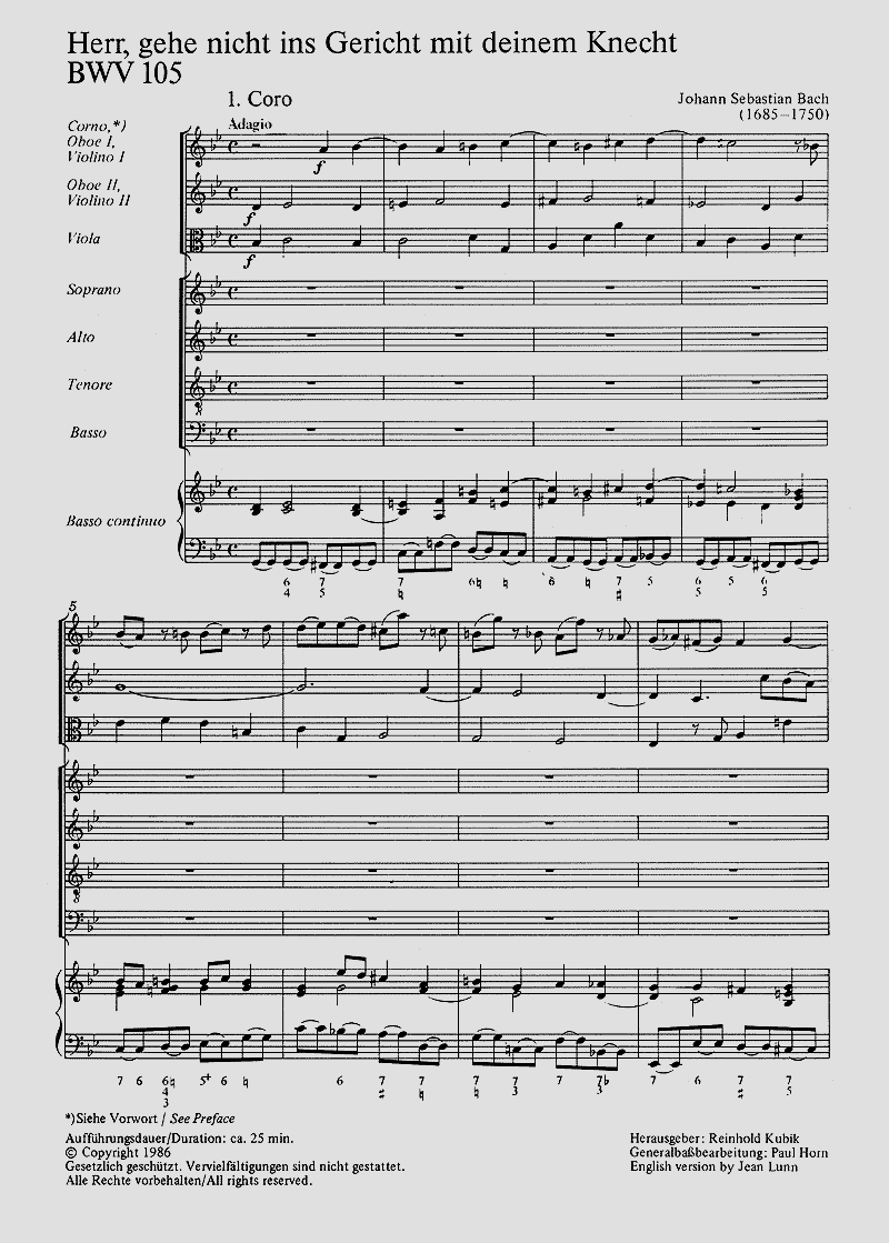 - Besetzung Soli, Gemischter Chor (SATB), 2 Oboen, Horn, Streicher und Orgel