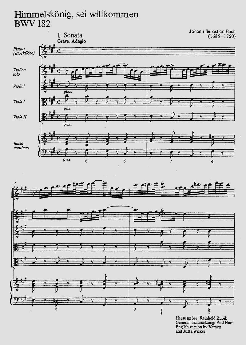 - Besetzung Soli, Gemischter Chor (SATB), Blockflöte, Violine, Streicher und Basso Continuo