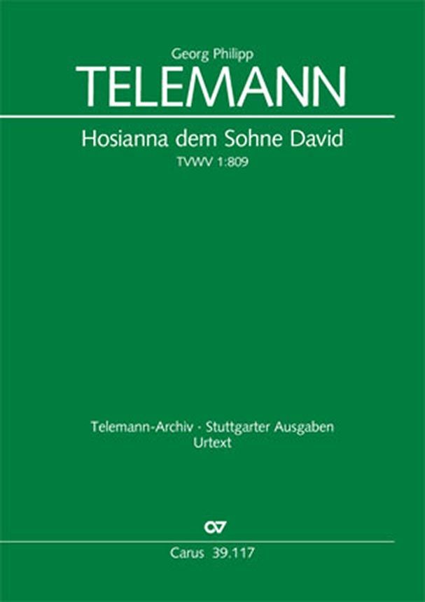 Kantate zum 1. Advent - 'Hosianna dem Sohne David' eröffnet als Kantate zum 1. Advent Telemanns Kantatenjahrgang 'Musicalisches Lob Gottes in der Gemeine des Herrn'. Dem Jahrgang liegen Dichtungen des Hamburger Jacobi-Hauptpastors Erdmann Neumeister zugrunde. Solo S (T), Solo Ms (A o Bar), Coro SS(B) o SA(B), 2 Vl, [Va], Bc
