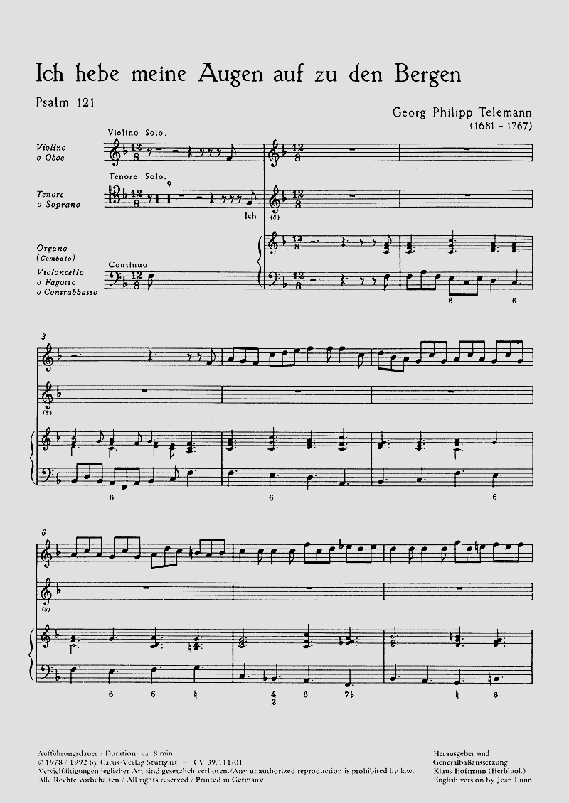 - Besetzung Gesang (hoch), Violine und Basso Continuo
