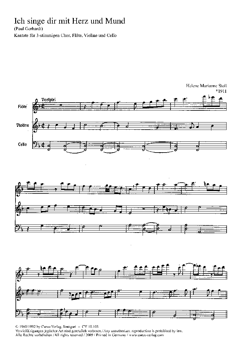 - Besetzung Gemischter Chor (SAM), Querflöte, Violine und Cello