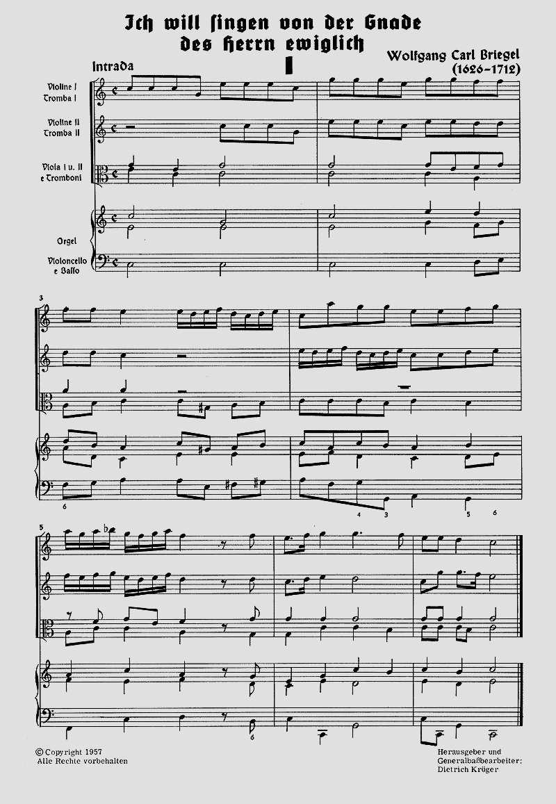 - Besetzung Soli, Gemischter Chor (SATB), 2 Violinen, 2 Violen und Basso Continuo