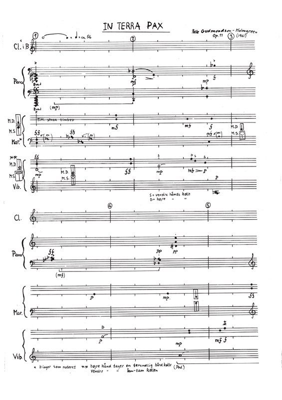In Terra Pax Op. 11 by Pelle Gudmundsen-Holmgreen, scored for Clarinet, Percussion and Piano. Composed in 1961.