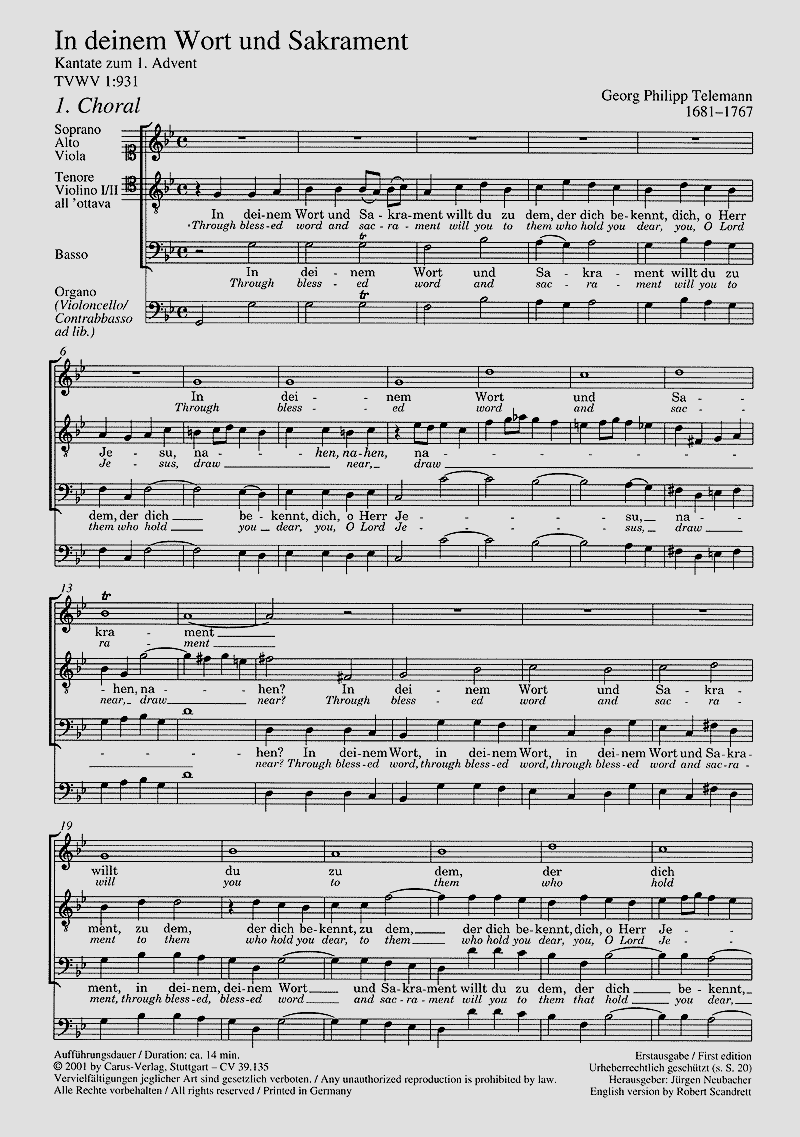 - Besetzung Gemischter Chor (SATB), 2 Violinen, Viola und Basso Continuo