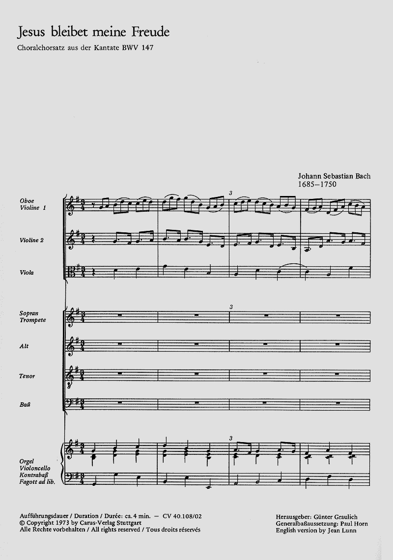 - Besetzung Gemischter Chor (SATB), 2 Violinen, Viola, Cello und Orgel