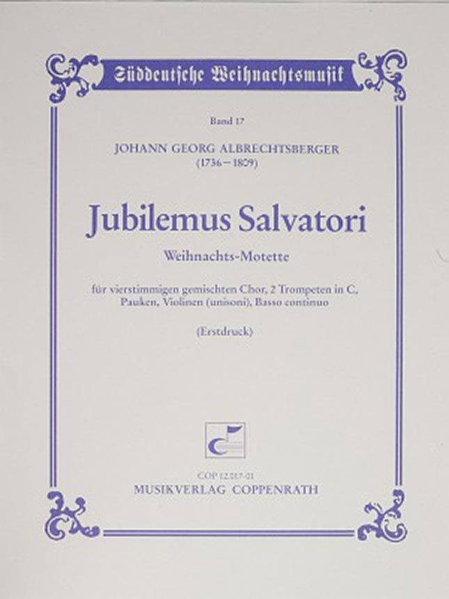 - Besetzung Gemischter Chor (SATB), 2 Trompeten, Pauke, Violine und Basso Continuo