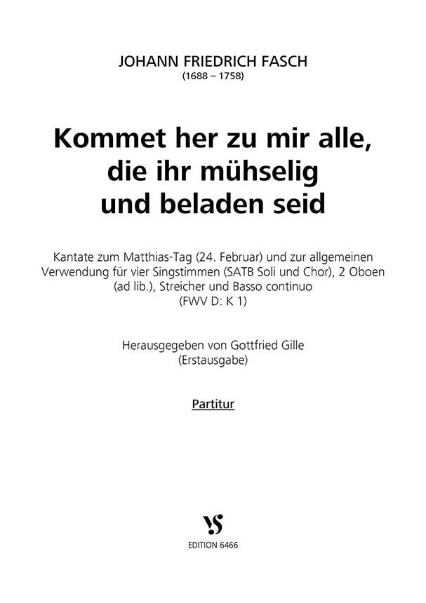 Kantate zum Matthias-Tag (24. Februar) und zur allgemeinen Verwendung für vier Singstimmen (SATB Soli und Chor), 2 Oboen (ad lib.), Streicher und Basso continuo (FWV D: K 1)