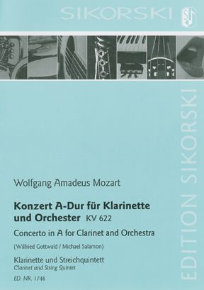 Eine ganz so reine Weste hatte der Klarinettist Anton Stadler, für den Mozart sein berühmtes Klarinettenkonzert A-Dur KV 622 und das Quintett für Bassettklarinette und Streicher KV 581 schrieb, ja nicht. Mit Geld soll er etwas gedankenlos umgegangen sein genau wie Mozart. Nichtsdestotrotz haben wir diesem Mann, der im Orchester des Wiener Burgtheaters angestellt war und Mozart nachhaltig inspirierte, die grössten Werke der Wiener Klassik für die Klarinette und die um eine große Terz tiefer gestimmte Bassettklarinette zu verdanken. Das berühmteste Klarinettenkonzert der Musikgeschichte nun in eine Kammermusikfassung zu verwandeln, ist vor dem Hintergrund dieses Werkpaares in Mozarts OEuvre ein besonders reizvoller Gedanke. Wilfried Gottwald und Michael Salamon haben das berühmte Stück mit dem herzzerreissend schönen Adagio, bei dem die Klarinette eine von Mozarts schönsten Melodien über zarten Orchestereinsätzen entfaltet, für Streichquintett und Klarinette bearbeitet. Vieles mag dabei ganz ungewohnt klingen, obwohl nicht eine einzige Pause und nicht ein einziger Ton aus Mozarts Original dabei weggelassen wurde. --------------------------------------------------------- The clarinettist Anton Stadler, for whom Mozart wrote his famous Clarinet Concerto in A major, K. 622 and the Quintet for Basset Clarinet and Strings, K. 581, doesn't have such a clean slate. He is said to have been thoughtless in managing money, as was Mozart. Nonetheless, the greatest works of Viennese classicism for the clarinet and for the basset clarinet tuned a third lower were written thanks to this man, who was employed in the orchestra of the Vienna Burgtheater and profoundly inspired Mozart. Before the backdrop of this pair of works in Mozart's oeuvre, it is an attractive thought to transform history's most famous clarinet concerto into a chamber music version. Wilfried Gottwald and Michael Salamon have adapted the renowned work for string quintet and clarinet; it includes the heart-rendingly beautiful Adagio in which the clarinet develops one of Mozart's most beautiful melodies above tender orchestral entries. Many things may sound unusual in it, although not a single passage nor a single tone of Mozart's original has been left out.