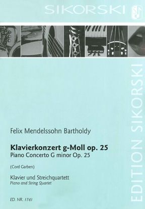 In der Musikgeschichte gibt es einige Beispiele für Klavierkonzerte, die von den Komponisten in alternativen Kammermusik-Fassungen herausgegeben und aufgeführt wurden. Die Konzerte KV 415 und KV 450 von Wolfgang Amadeus Mozart zählen zu den bekanntesten unter ihnen. Als der Herausgeber das nebenstehende antiquarische Titelblatt zum 1. Klavierkonzert in g-Moll von Felix Mendelssohn Bartholdy entdeckte, kam ihm spontan die Idee, diese historische Aufführungspraxis wieder aufleben zu lassen. Der Text des Titelblatts lautet: 'Erstes Konzert für das Pianoforte, wie es der Autor bei den Philharmonischen Konzerten [in London] mit Orchester oder Streichquartett aufführte.' Die hier vorliegende Fassung für Klavier und Streichquartett wurde, unter sorgfältiger Berücksichtigung melodisch-thematischer Aspekte, aus der Orchesterpartitur rekonstruiert. --------------------------------------------------------- In musical history there are several examples of piano concertos edited and performed by the composers in alternative chamber music versions. The concertos KV 415 and KV 450 by Wolfgang Amadeus Mozart are perhaps the most popular among them. When the editor found the appended antiquarian title-page of the First Piano Concerto in g minor by Felix Mendelssohn Bartholdy, he had the spontaneous idea to revive this historical performing practice. The text of the title-page says: 'First Concerto for the piano forte, as performed by the author at the Philharmonic Concerts, with orchestral or quartett accompaniments.' The present version for piano and string quartet was reconstructed from the orchestral score under careful consideration of melodic and thematic aspects.