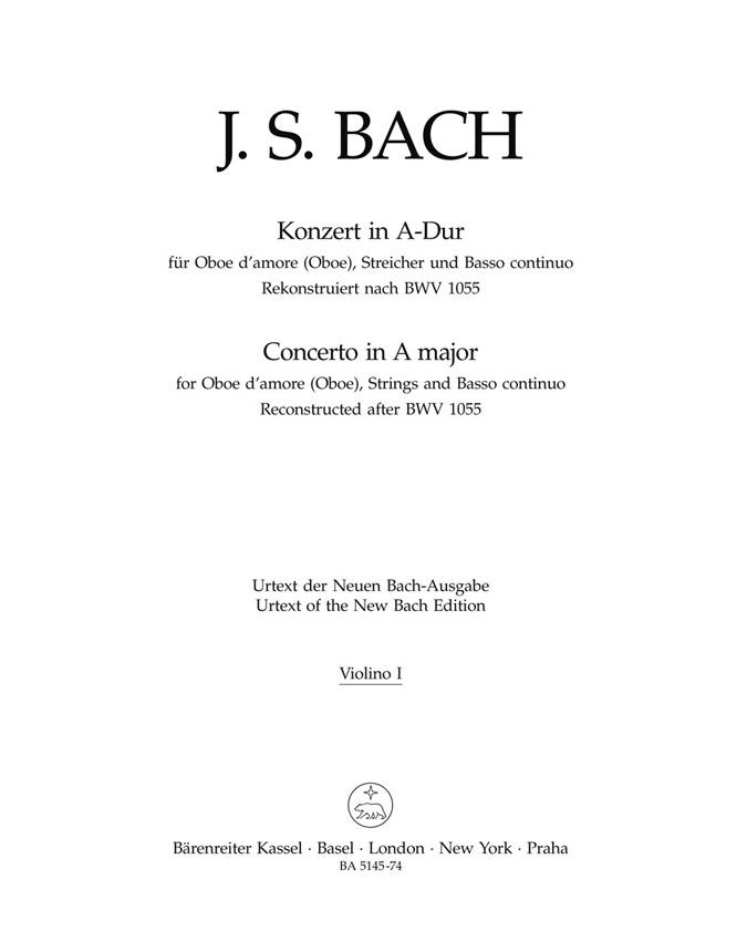 für Oboe, Violine, Streicher und Basso continuo (rekonstruiert nach BWV 1060)