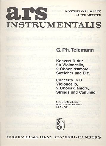 Konzert für obligates Violoncello, 2 Oboen d'amore, Streicher und Bc