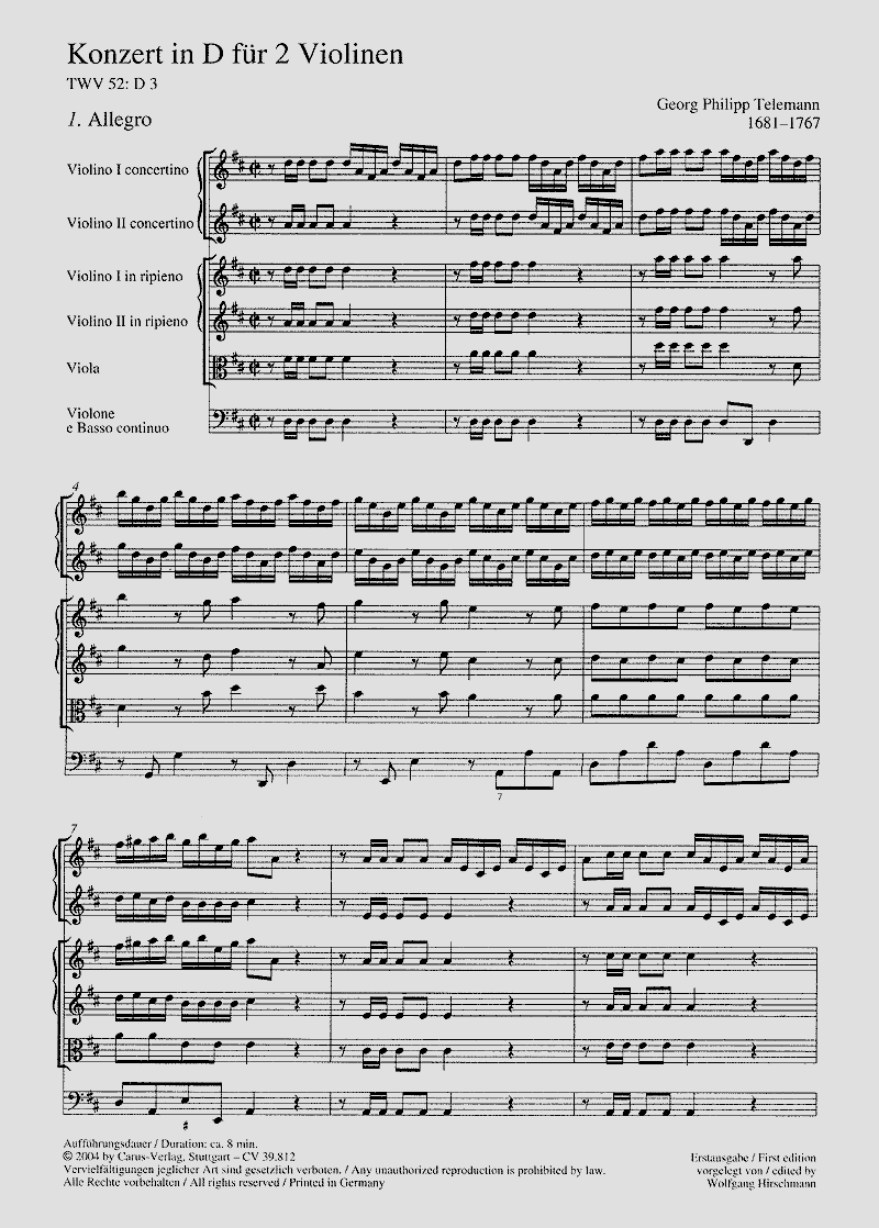 Konzert in D-Dur für 2 Violinen TVWV52