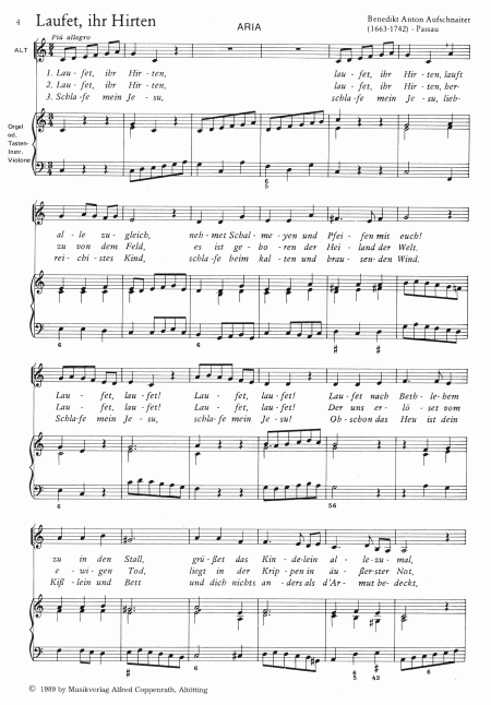 - Besetzung Gesang (tief), 2 Violinen und Orgel